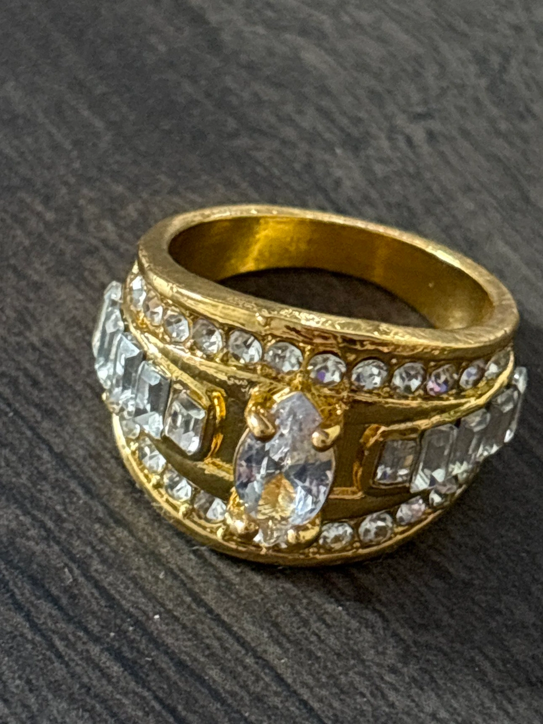 Gold plated ring size 7 great to add some sparkle to any occasion , brand new never worn unfortunately wrong size , hoping someone will find use to this lil treasure, pick up or can meet on subway line .