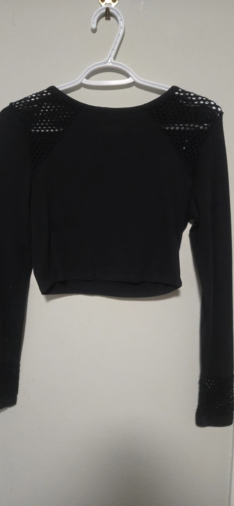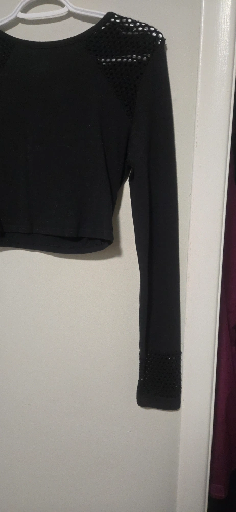 Black long sleeve cropped top. Mesh detailing on shoulders and cuffs. Size medium. Excellent condition.