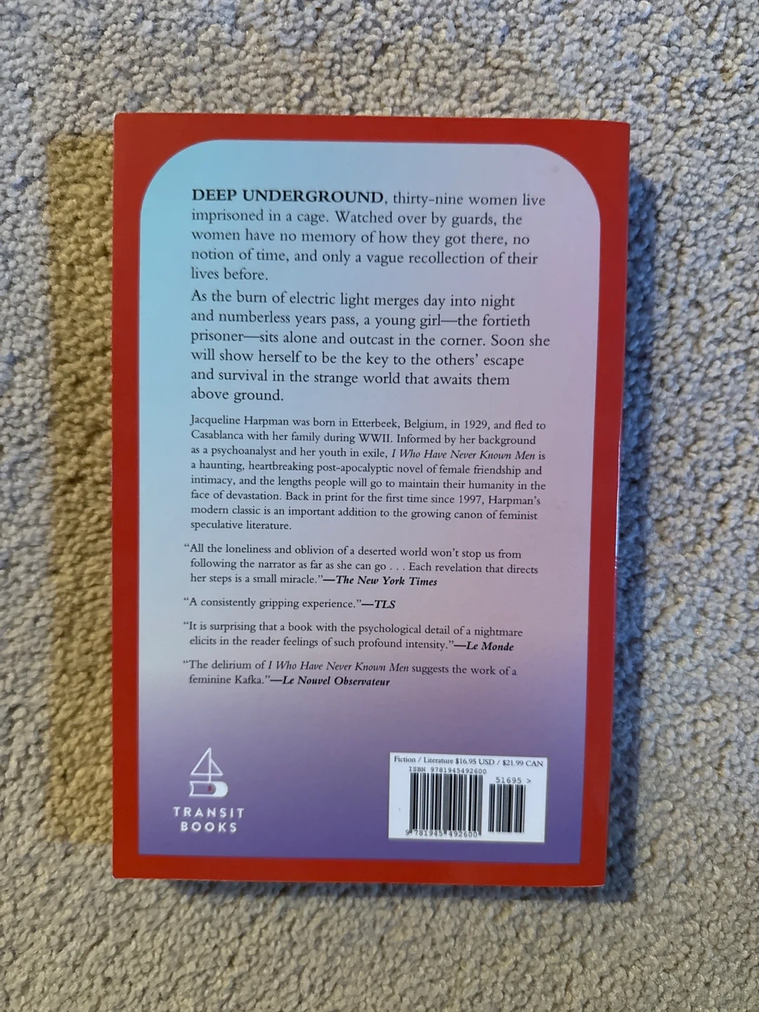 Selling a copy of "I Who Have Never Known Men" by Jacqueline Harpman. It's a thought-provoking piece of literature, perfect for anyone interested in feminist narrative literature. It's in great condition and ready for a new reader!