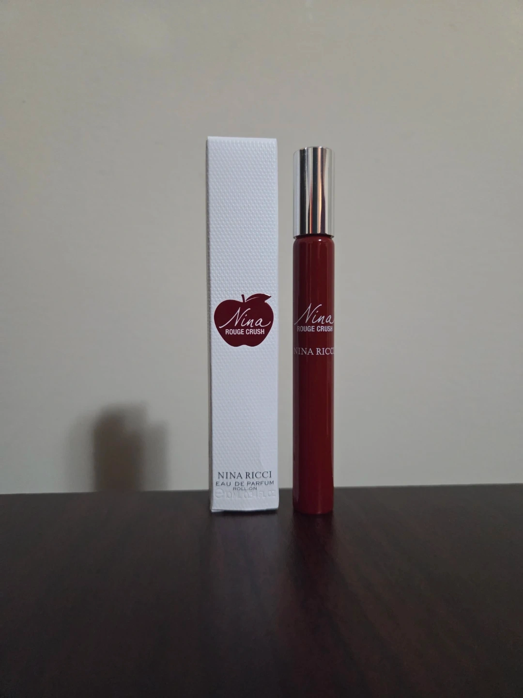 Authentic Nina Ricci Rouge Crush Eau de Parfum in a convenient roll-on bottle format. This fragrance is sweet, playful, and seductive with a fruity-floral blend and warm gourmand undertones—perfect for travel, quick application, or on-the-go touch-ups.