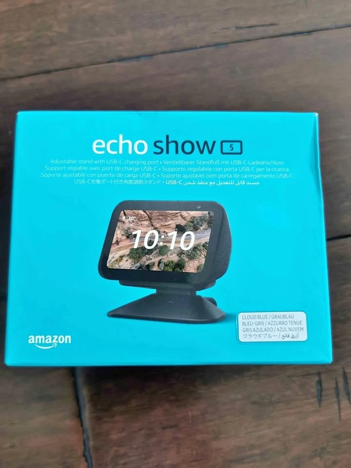 Brand new sealed Echo Show 5 in Cloud Blue with adjustable stand and USB-C Charging Port. Pick up only at 401 and Weston Road.