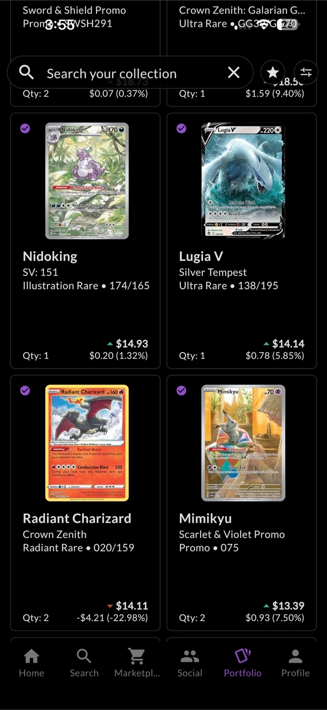 Selling a collection of Pokemon cards over the $3 amount. Willing to sell at 75% MV