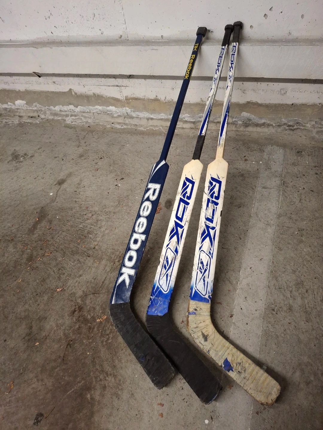 Selling three Reebok hockey sticks! They're used but still have plenty of life left in them for some fun on the ice or at the rink. Great for practice or casual play
