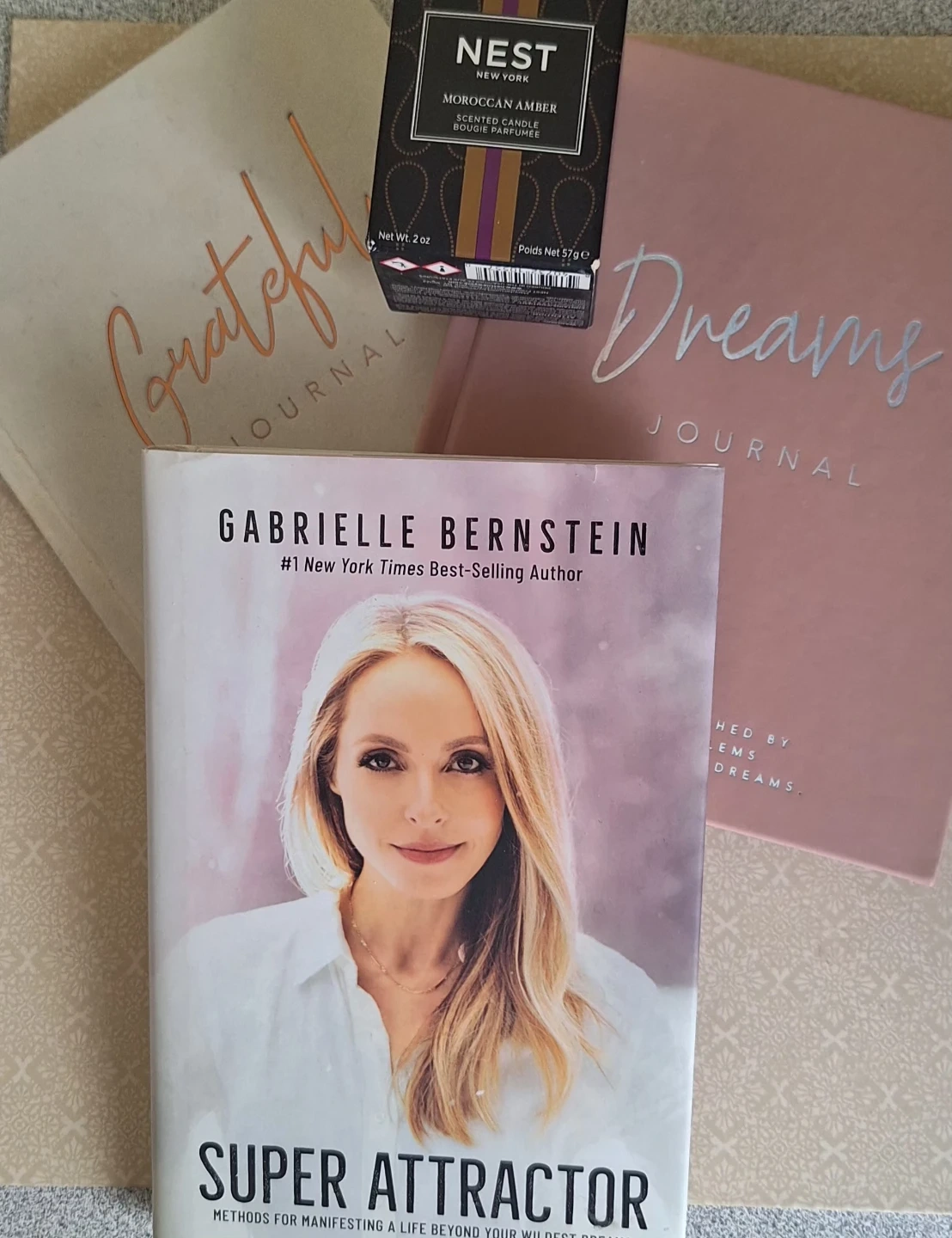 This book by Gabrielle Bernstein offers methods for manifesting. Comes with 2 guided journals & NEST candle Morroccan Amber.