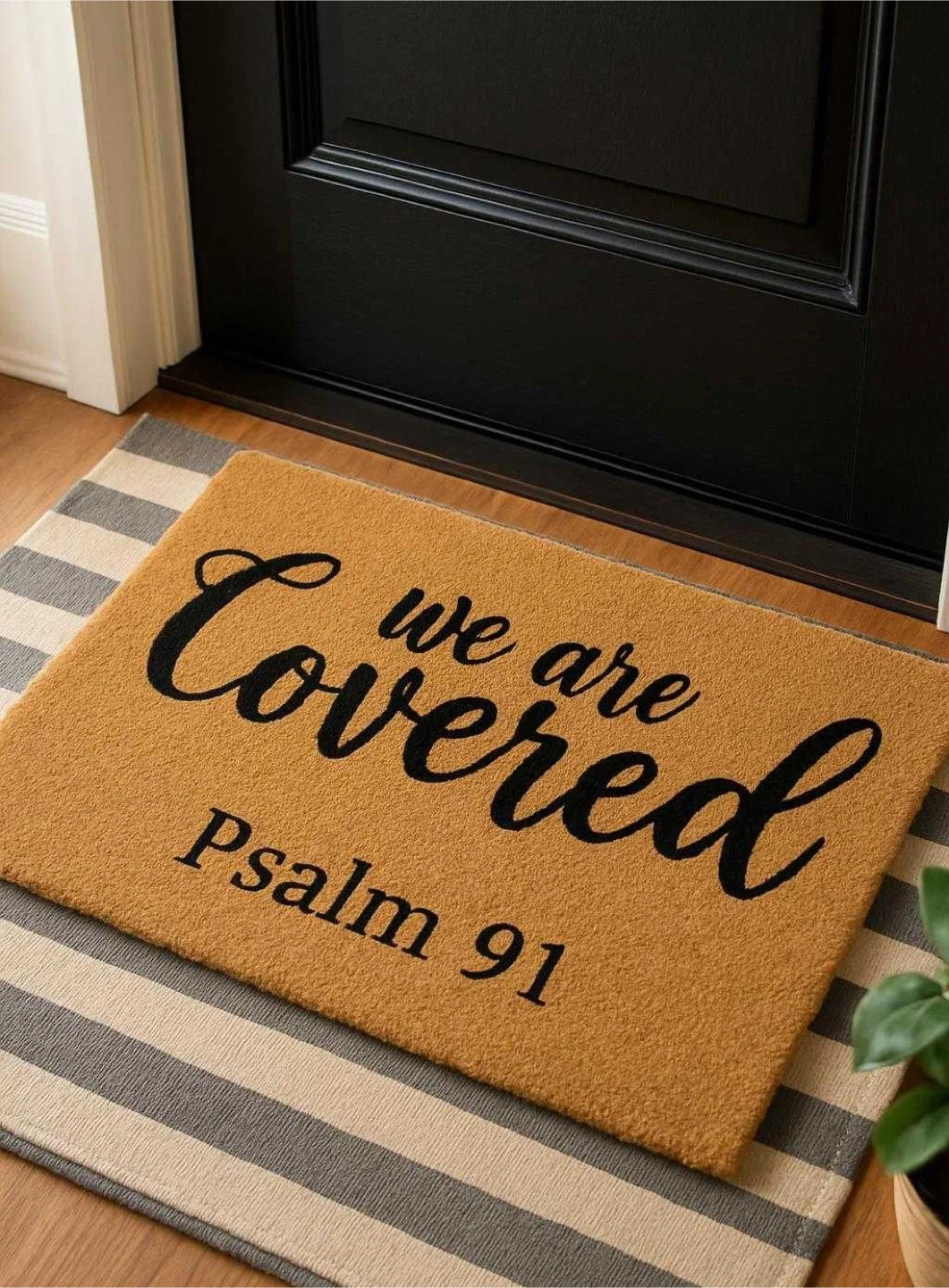 Spruce up your entryway with these cute doormats! They add a welcoming touch to any home. One doormat says 'Home Sweet Home' and the other says 'We are Covered Psalm 91'.