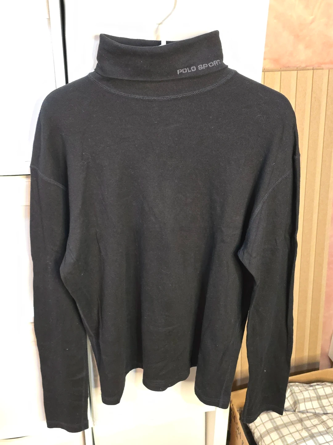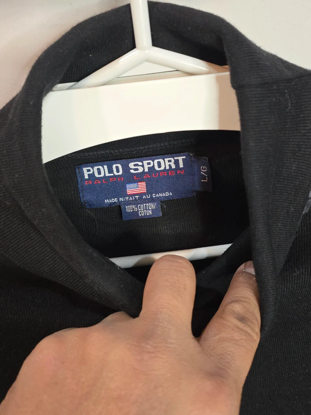 This is a black Polo Sport by Ralph Lauren turtleneck sweater. It's made from 100% cotton. This sweater is a size L/G.