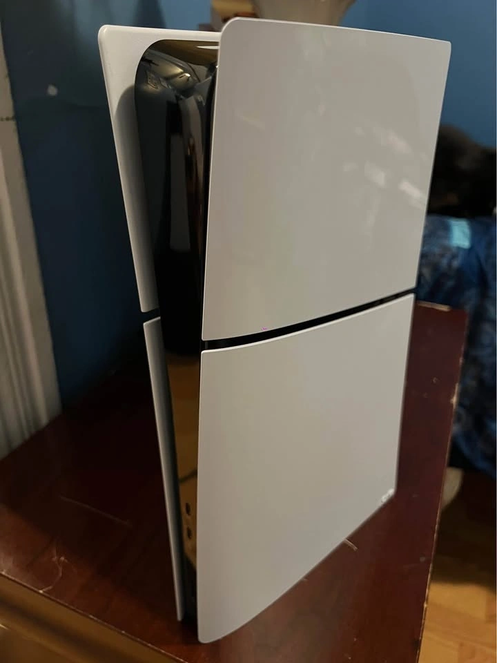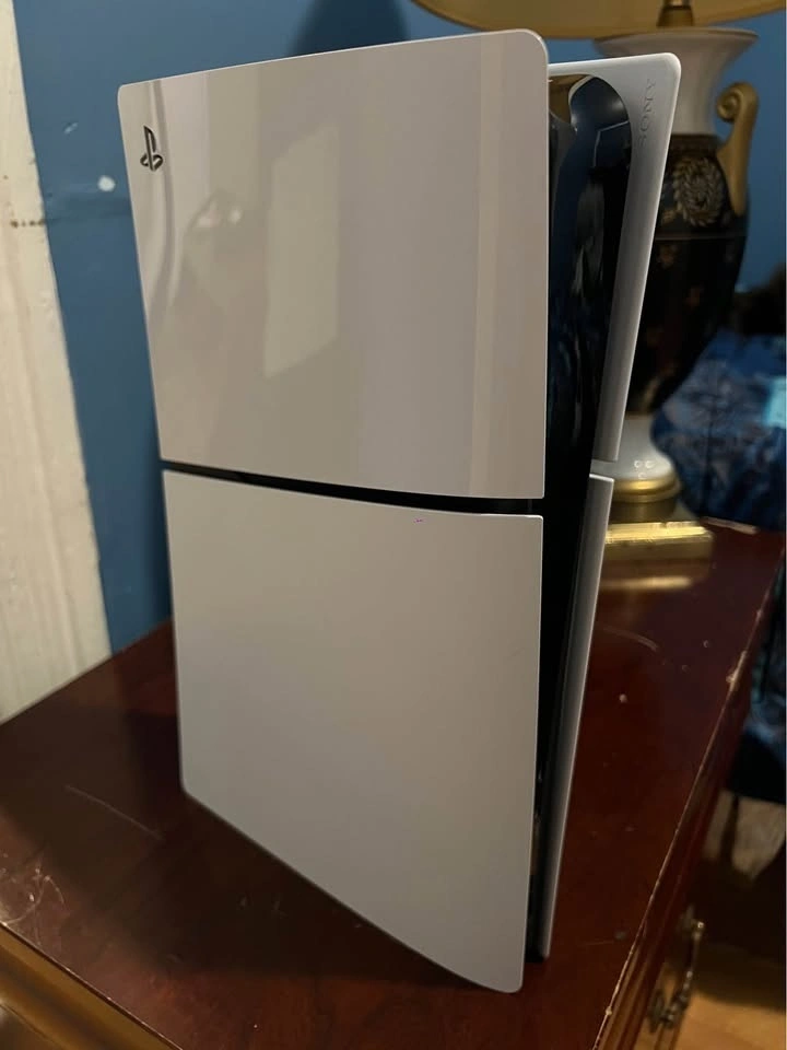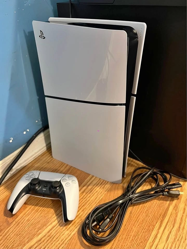 PlayStation 5 Slim Console Digital Edition in great condition, very well kept and cleaned nicely. It works perfectly fine and has plenty of storage available with 848 Gigabytes and comes with a DualSense wireless controller and both HDMI and A/C Power cords as well as a USB to USB-C cable for pairing and charging the controller. The console has been factory reset, as seen in the video, and is ready for setup. Serious buyers only! Feel free to reach out if you’re truly interested in this great console set. Thanks