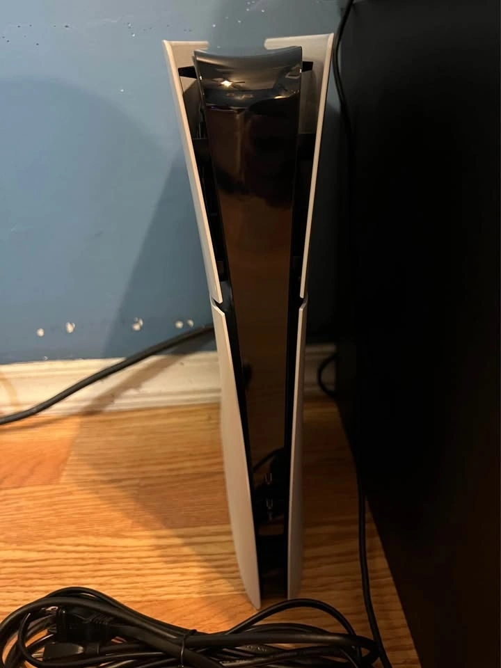 PlayStation 5 Slim Console Digital Edition in great condition, very well kept and cleaned nicely. It works perfectly fine and has plenty of storage available with 848 Gigabytes and comes with a DualSense wireless controller and both HDMI and A/C Power cords as well as a USB to USB-C cable for pairing and charging the controller. The console has been factory reset, as seen in the video, and is ready for setup. Serious buyers only! Feel free to reach out if you’re truly interested in this great console set. Thanks
