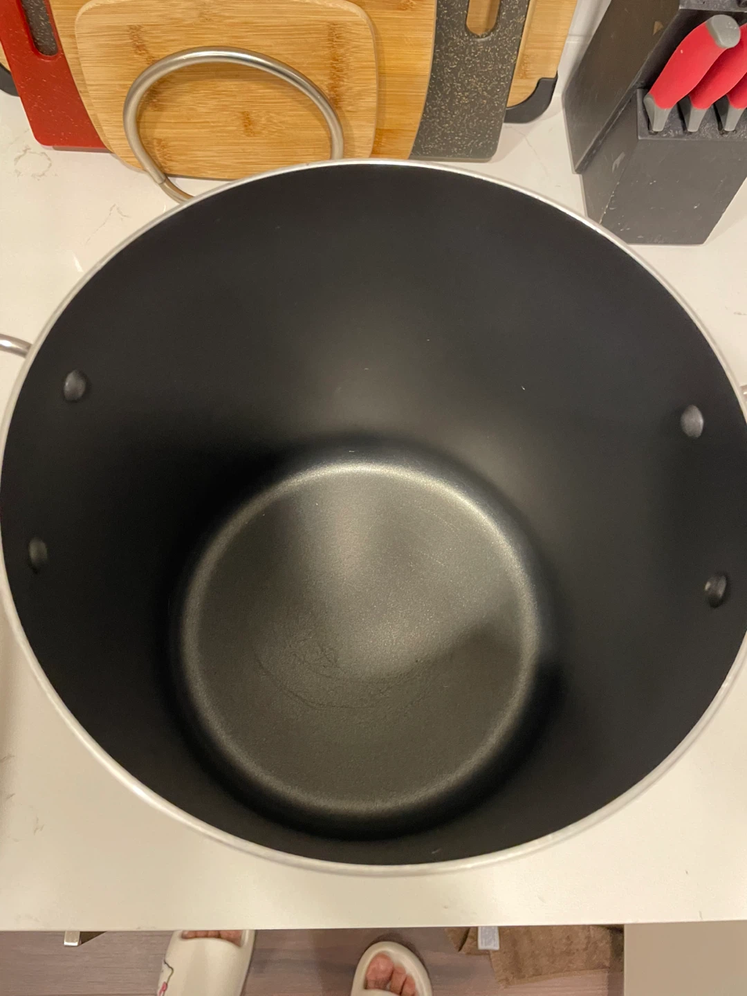 Selling a large black stock pot with a glass lid. It's in great shape and ready for making soups, stews, or boiling pasta. The pot measures approximately 36cm in height and 27cm in diameter.