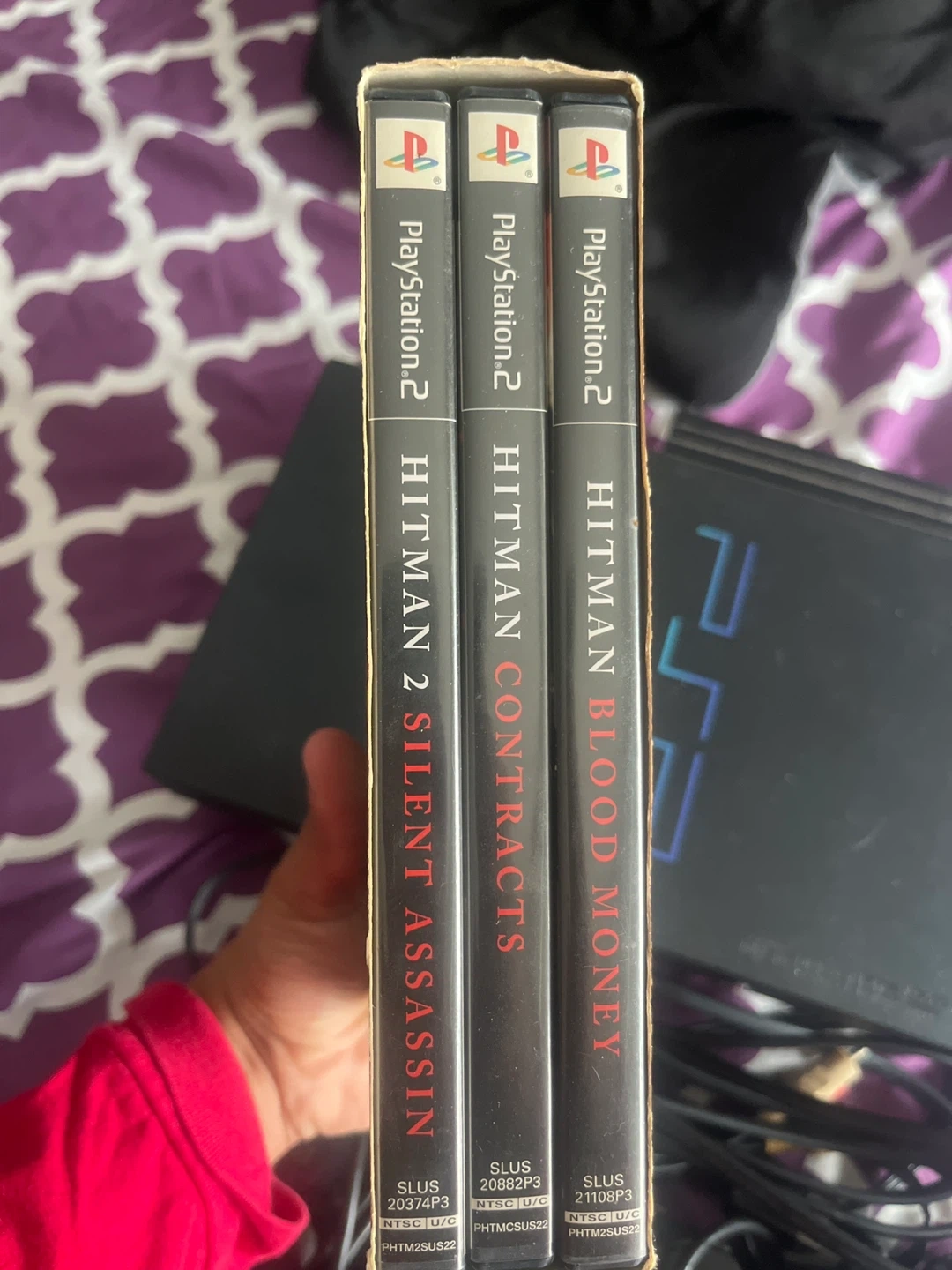 Bundle includes Enter the Matrix, Hitman Trilogy (Silent Assassin, Contracts, Blood Money), and The Sopranos: Road to Respect for PlayStation 2. All games are rated Teen or Mature. Games come in original cases.