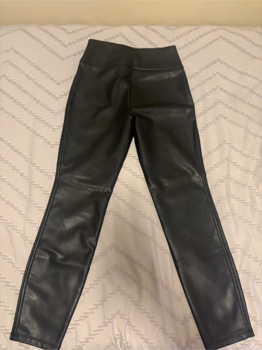 Selling a pair of Reitmans faux leather leggings in black! They are a size 2 petite. These leggings are practically new as I wore once and realized they weren’t for me after all.