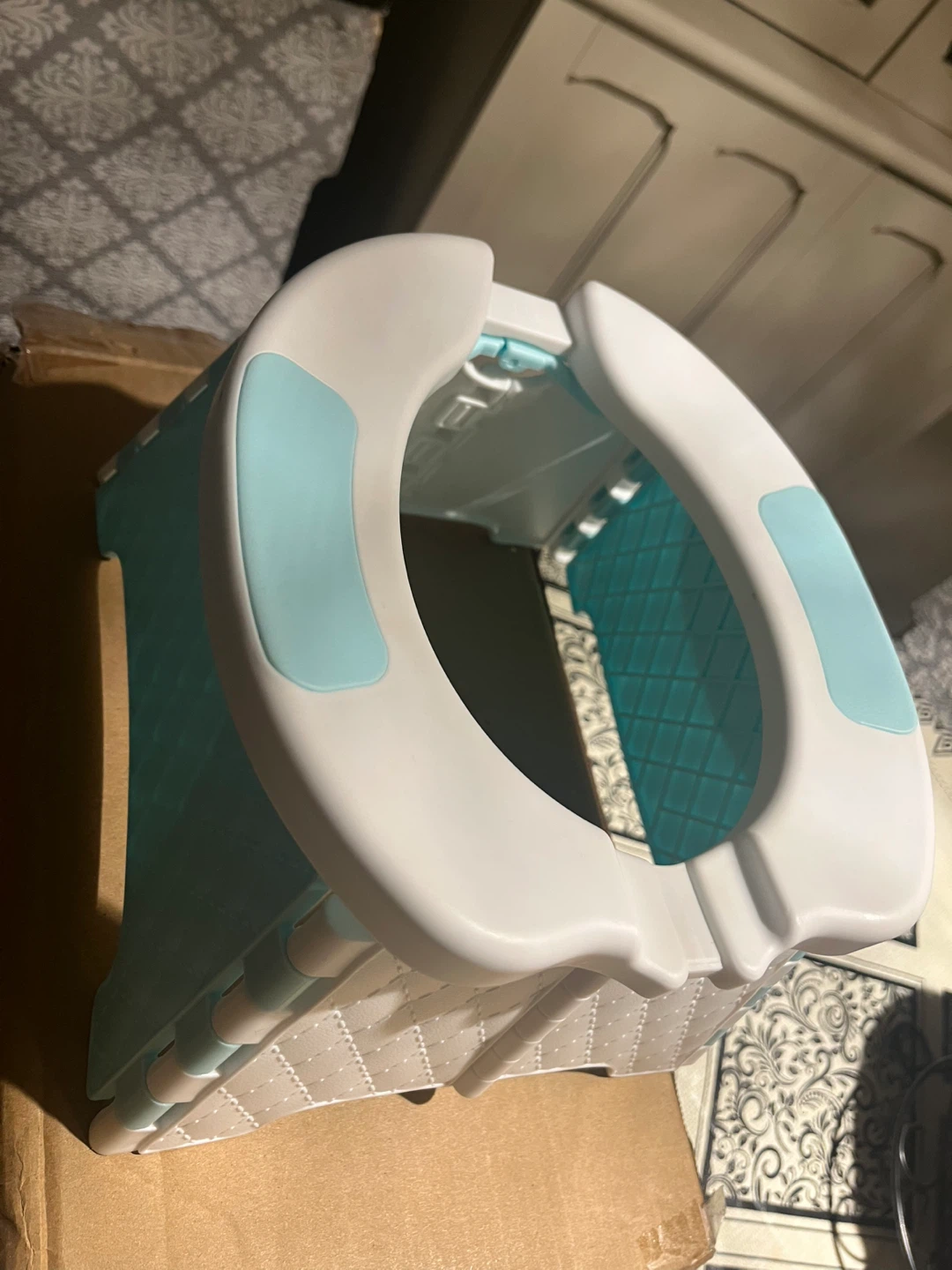 Selling a new (unused) Jool Baby portable potty training chair in aqua. It's foldable, making it great for indoor/outdoor use and camping! It also comes with a travel bag.