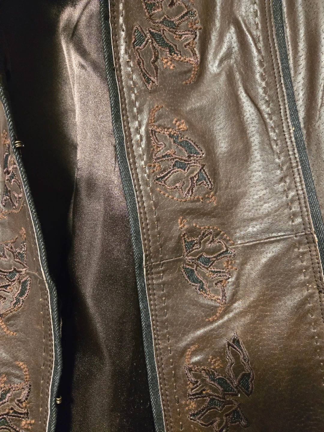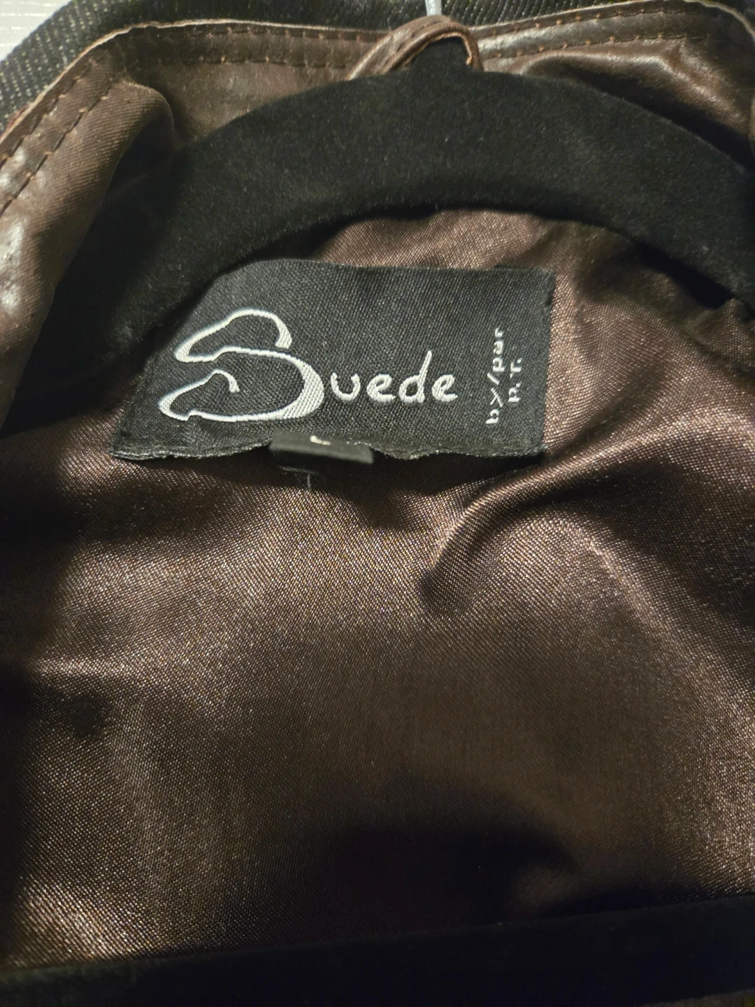 Selling a vintage stylish Suede by/par R.T. leather coat in size L. It's a beautiful brown colour with unique embroidered detailing. The coat is in great condition and ready for a new home!