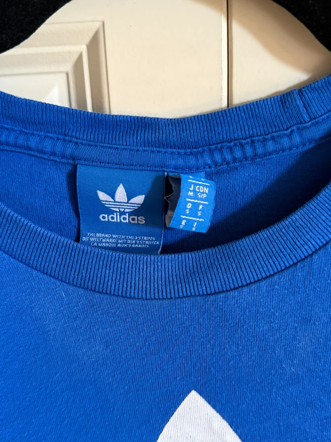 Selling a bright blue Adidas t-shirt in size M. It features the classic Adidas logo prominently on the front. Great for casual wear or sports activities!