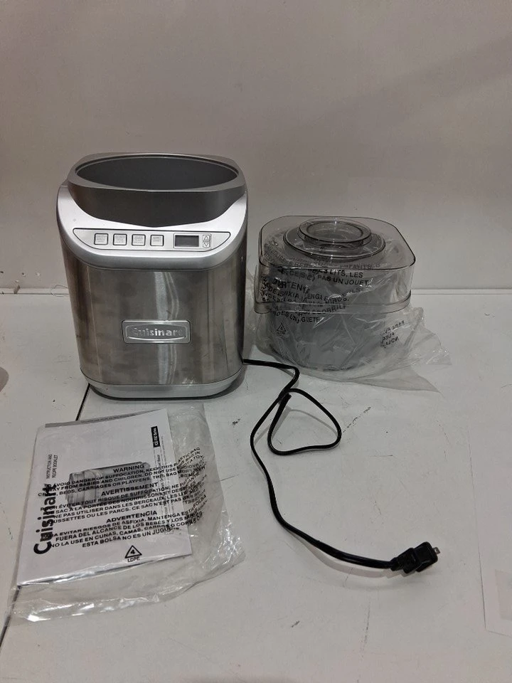 Make delicious frozen treats at home with this Cuisinart ICE-70C ice cream maker! This unit features a generous 2 quart (1.9 L) capacity, electronic touch controls, a brushed metal housing, three pre-programmed settings, LCD display and auto shut-off, double wall insulated bowl and a funnel with built-in measuring cup.
