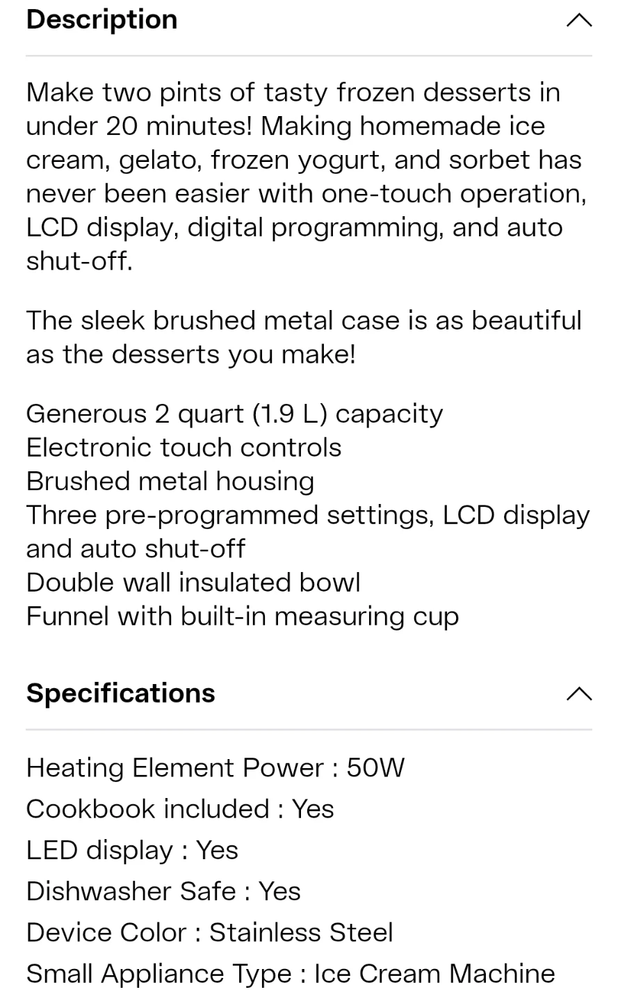 With this ice cream maker, you'll be whipping up frozen delights in no time! If the ad is still up, it's still available, so don't delay!