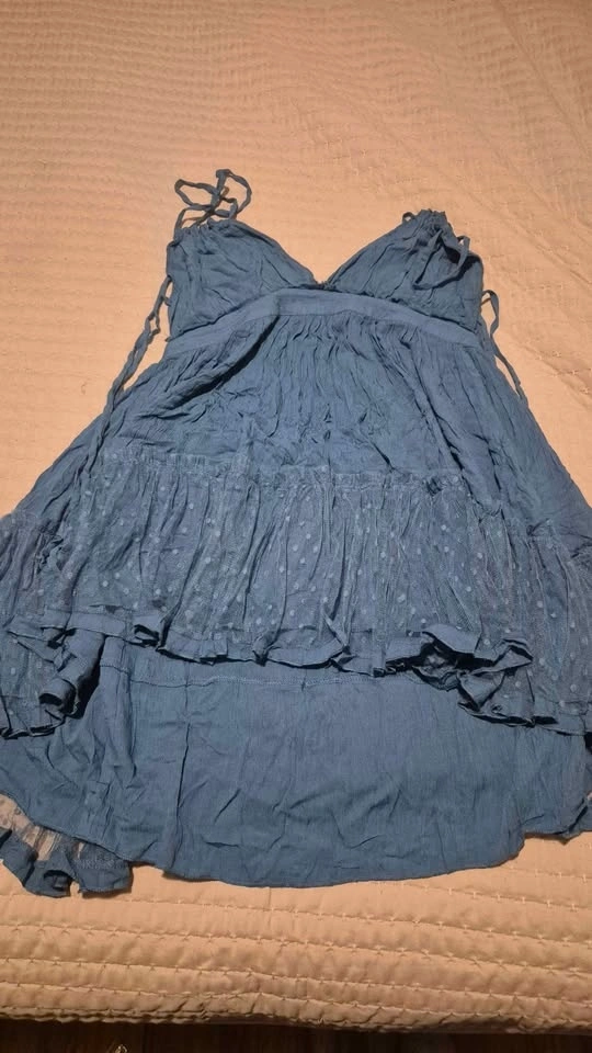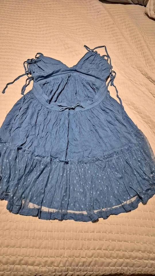 Buy & SellBlue Tie Strap Crinkle Dress medBlue Tie Strap Crinkle Dress med$20Cute blue dress with tie straps. It has a crinkled texture and a tiered skirt. The bottom tier is sheer with polka dots. Great for summer vibes.WHERE TO MEETCheck LocationView MapSELLERverifiedMichBraeside892 reviews0 chats·0 favorites·6 viewsSEND CHAT TO SELLERHi Mich! I’m interested in your listing.Hi Mich! I’m interested in your listing.Get the Karrot app to chatSign In to chat