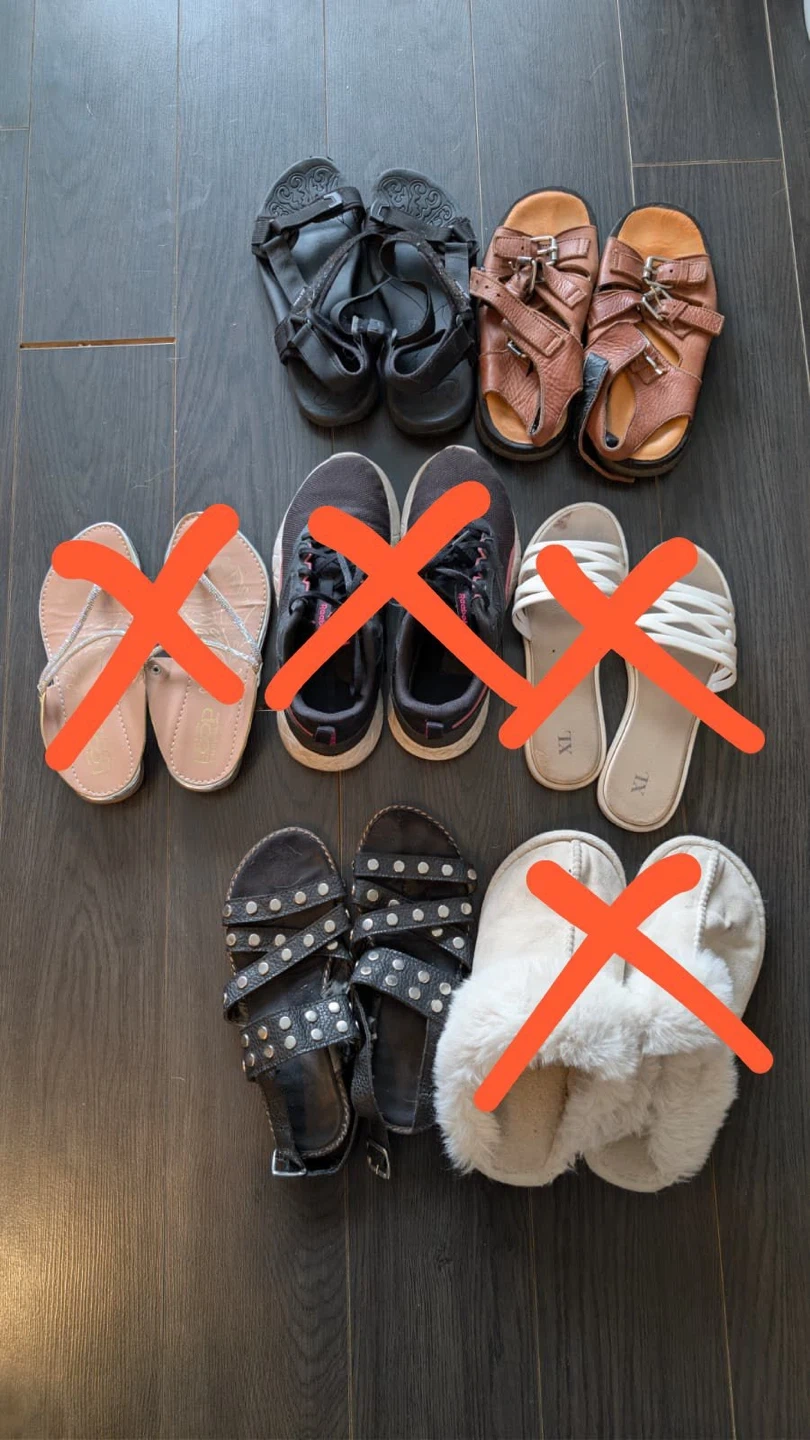Giving away a collection of women's shoes and sandals in various styles and sizes. There are sandals, sneakers and slippers. Great for someone looking for a variety! If you want just one or two pairs it’s ok too.