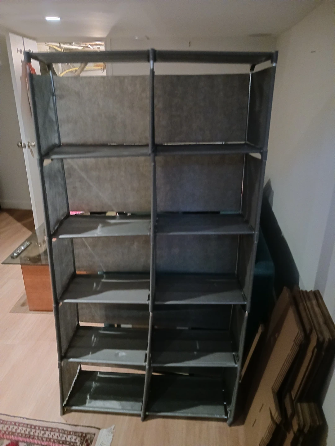 this shelf has a couple bent pieces, but it comes apart and the other pieces are in good condition. you could remove the bad pieces and assemble a perfect shelf that is 3/4 this size. pickup in little Portugal
