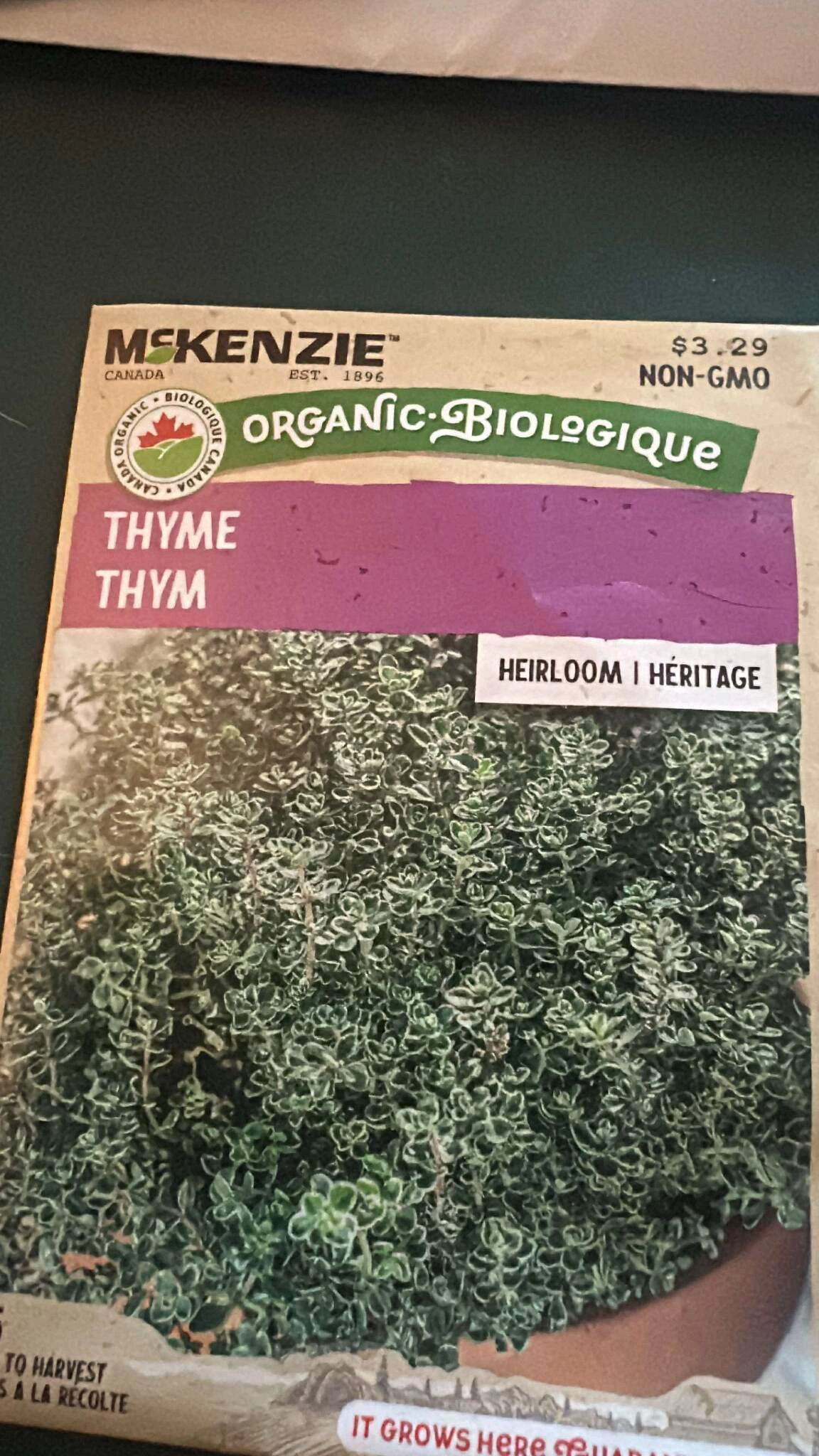 Selling 2 packs of McKenzie Organic Thyme seeds! These are heirloom seeds for $1.50 each, perfect for starting your herb garden. The packet says it grows here, so you know it's good for Canadian gardens. Originally priced at $3.29.