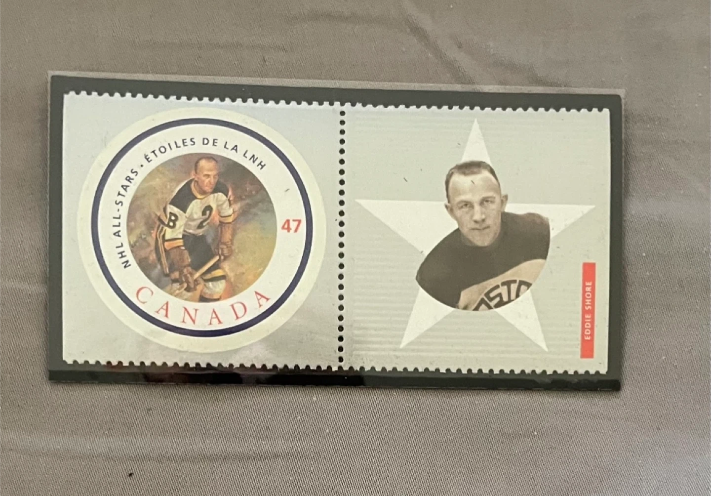 Includes a 2001 stamp and medallion set featuring NHL All-Stars and Eddie Shore. Comes with its original case and packaging.