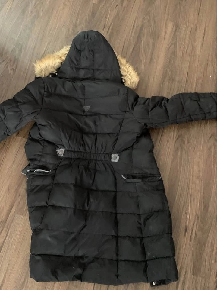 This is a light winter coat, it keeps warm but not for major cold. No major tears, signs of usage on pic 2. Pickup and cash only
