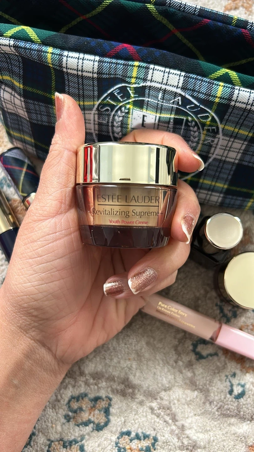 Includes 6 products with an Estée Lauder tartan cosmetic bag.Perfect for travel or daily use!