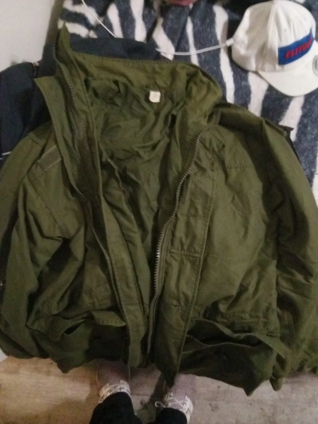 Olive green jacket with a full zipper closure. It has a sturdy construction for outdoor wear. This jacket is great for cooler weather! genuine Canadian army jacket that turns into a bag serial #839190987344 ww2