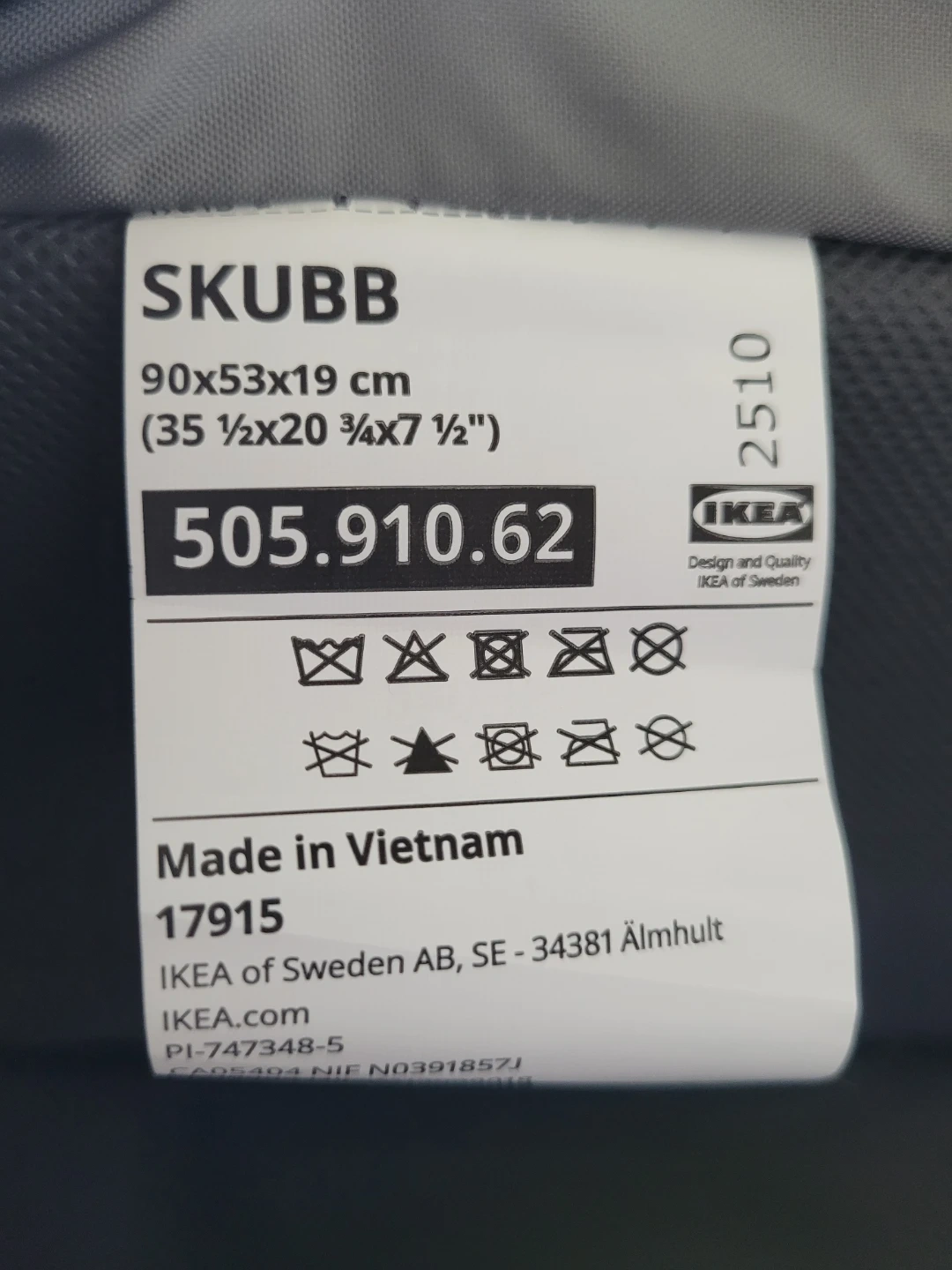 This is an IKEA SKUBB storage box. It measures 90x53x19 cm (35 1/2x20 3/4x7 1/2").