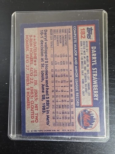 1984 Topps #182 Darryl Strawberry Rookie Card RC – New York Mets