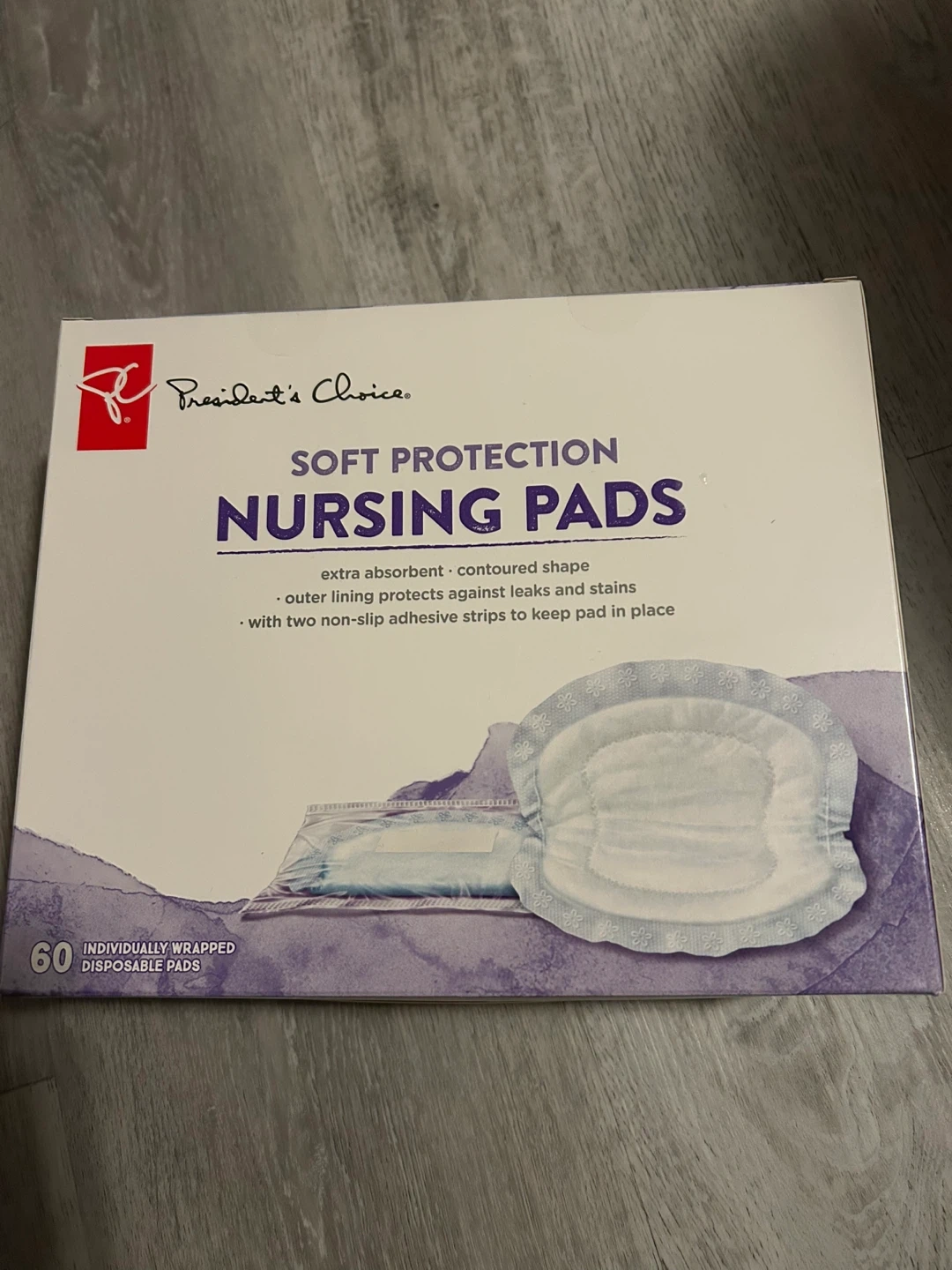 President's Choice Soft Protection Nursing Pads. Extra absorbent, contoured shape. Outer lining protects against leaks and stains. Includes two non-slip adhesive strips to keep pads in place. Individually wrapped disposable pads.