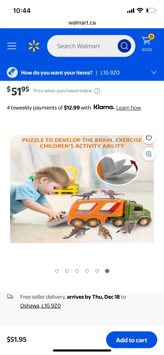 This is a fun dinosaur transporter truck toy! The truck is green and orange and comes with several dinosaur figures. It has a detachable trailer and a loading pad that folds down. The dimensions of the dinosaurs are shown in one of the pictures. Originally bought for $51.95