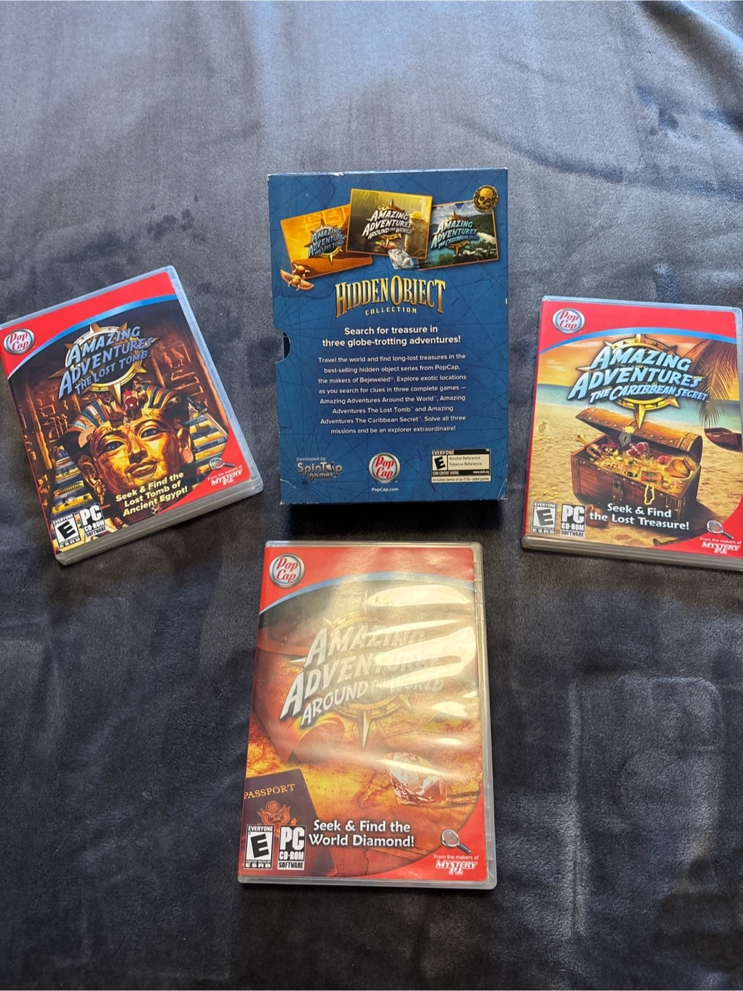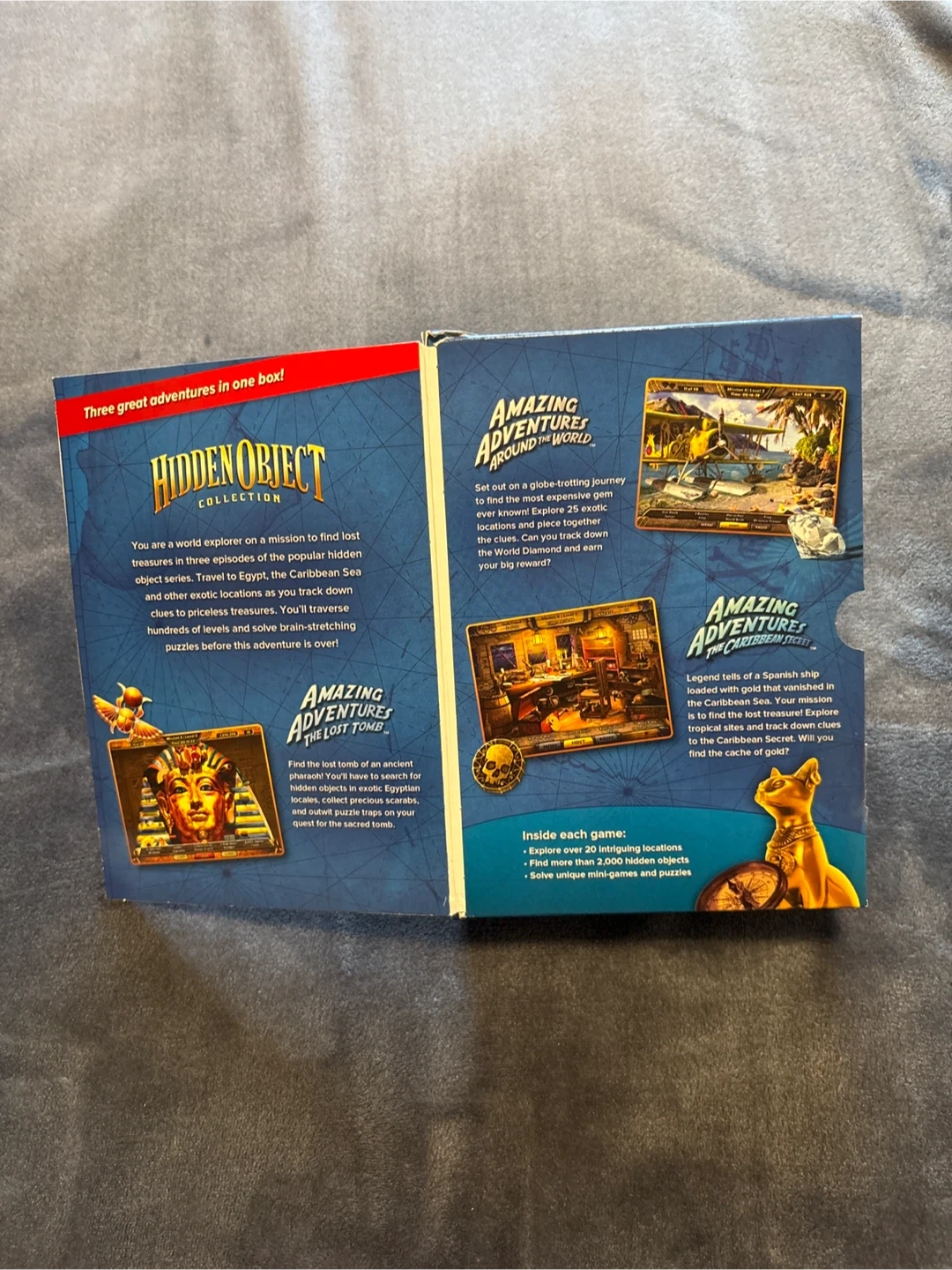 Search for treasure in three globe-trotting adventures in this PC game collection. It includes Amazing Adventures: The Lost Tomb, Amazing Adventures Around the World, and Amazing Adventures: The Caribbean Secret. Solve puzzles and find hidden objects!