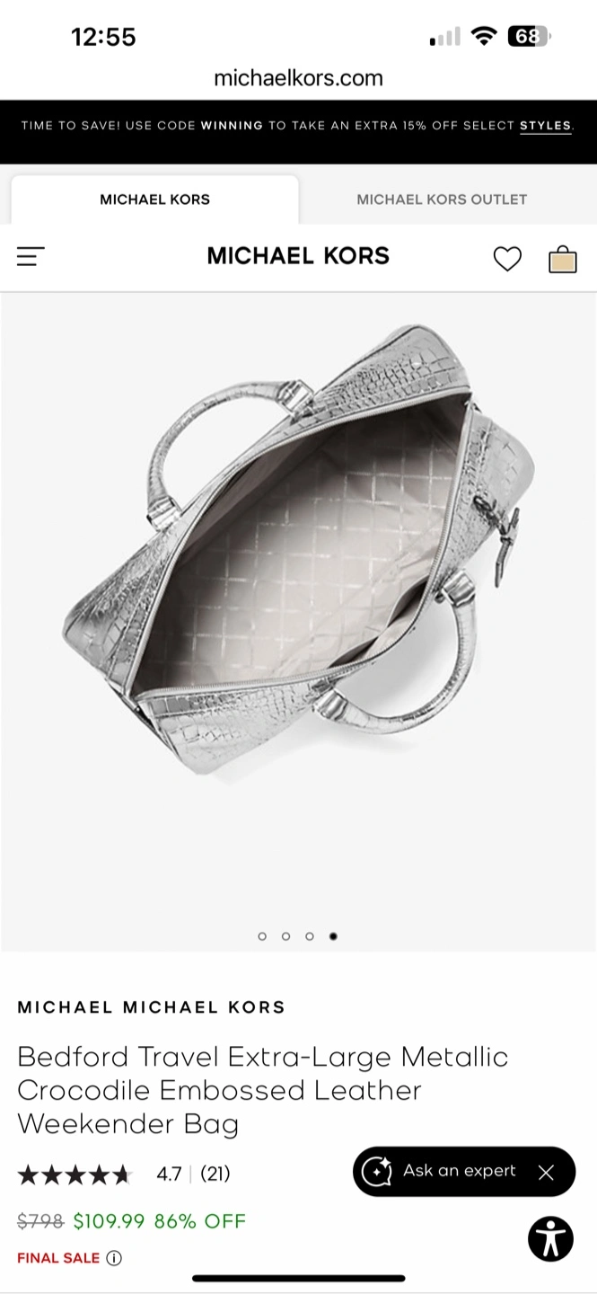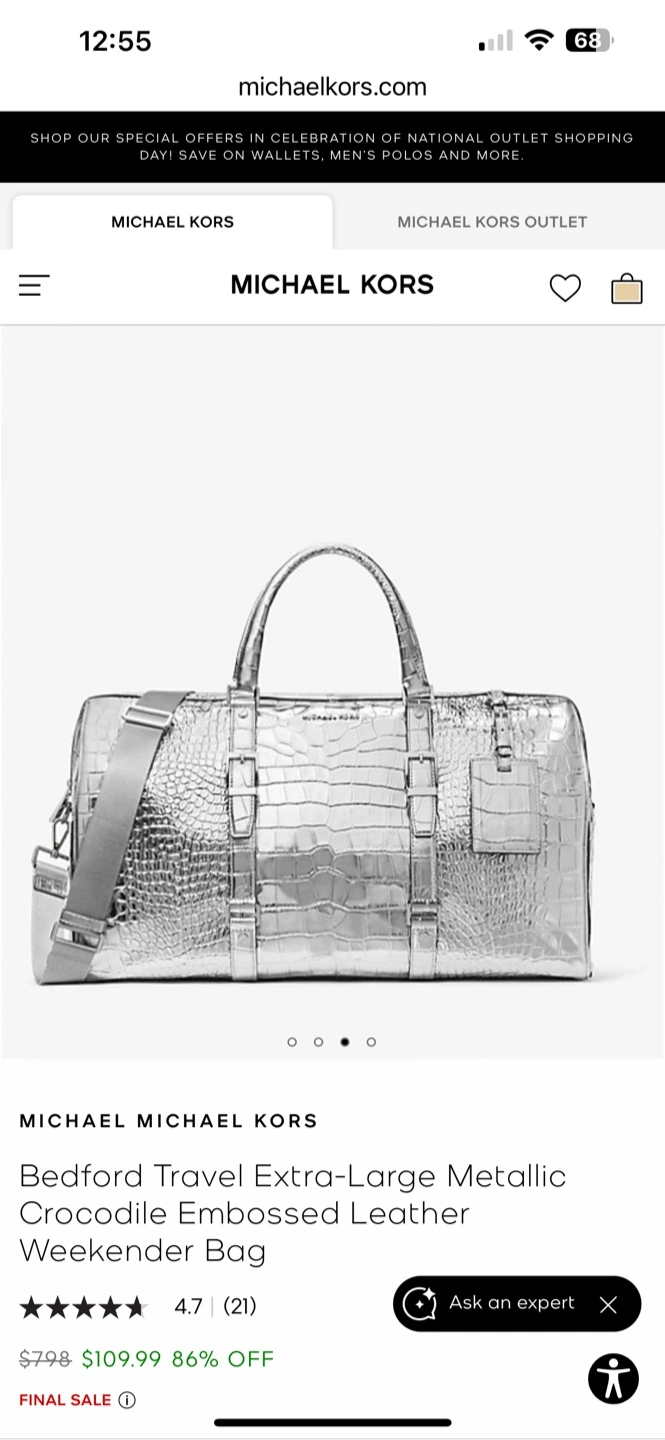 Michael Kors Bedford Travel Metallic Crocodile Weekender Bag