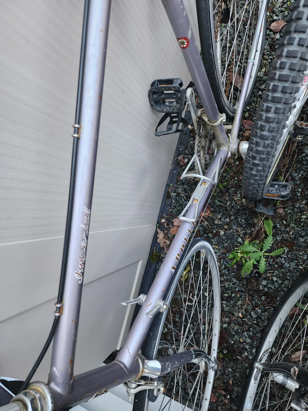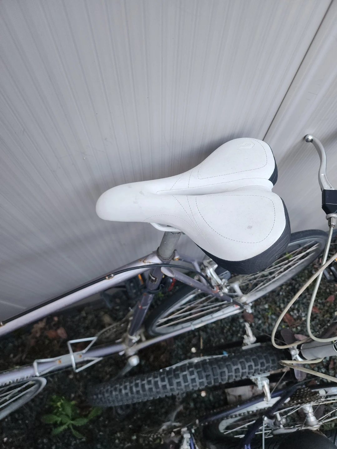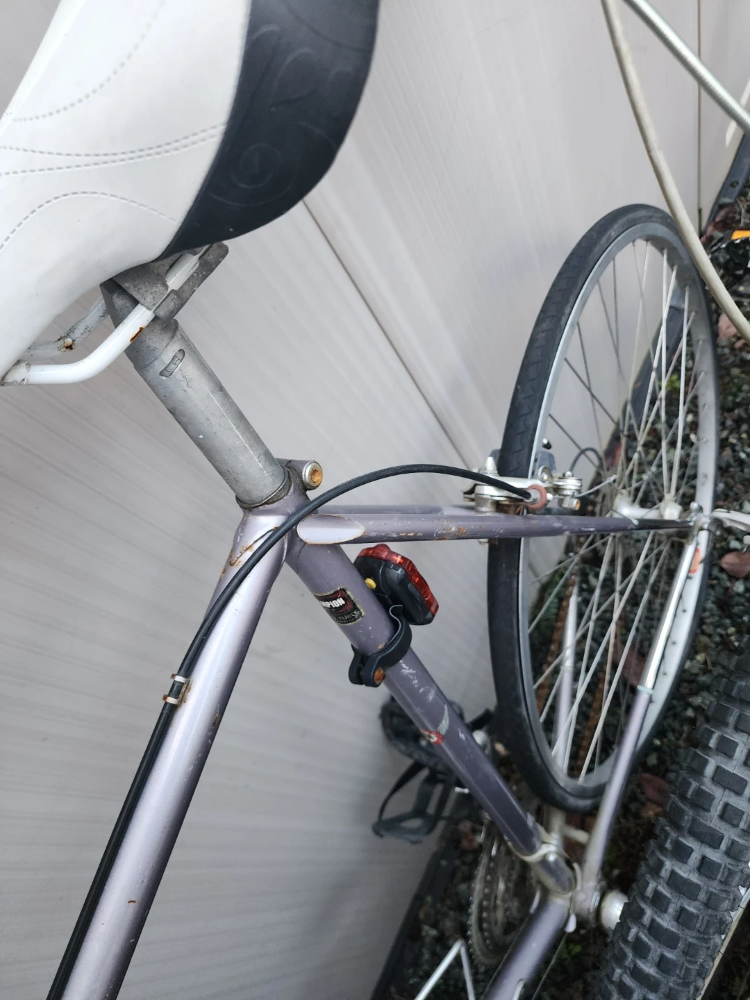 A purple Rocky Mountain Fusion mountain bike. This bike is great for hitting trails or casual rides around town. It's a reliable option for getting some exercise and enjoying the outdoors!