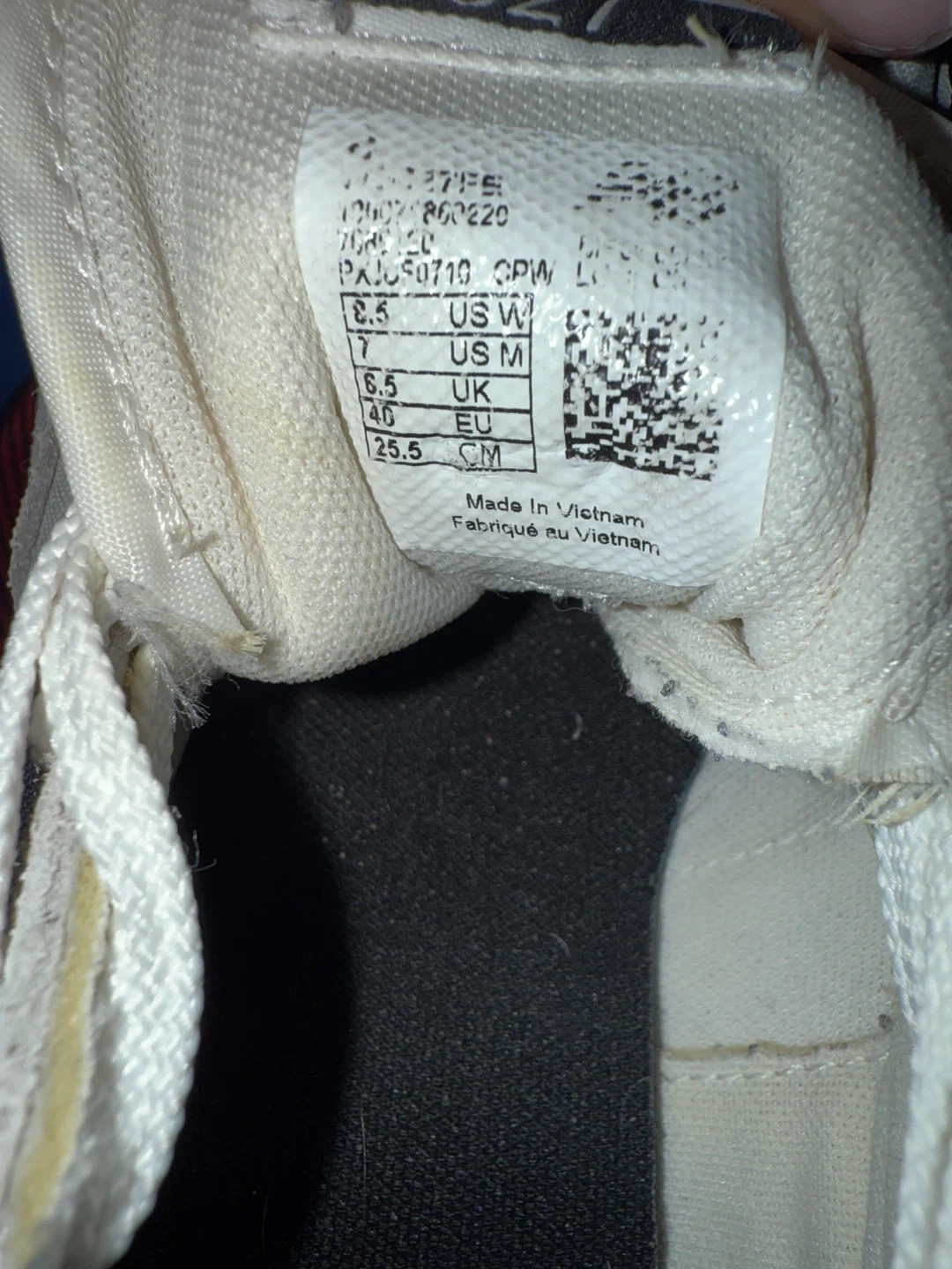 These New Balance 327 sneakers come in a cream and black colorway. They're a US Women's size 7, UK size 5.5, EU size 40, and CM 25.5. Made in Vietnam.