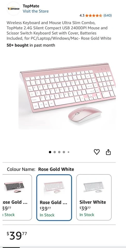 TopMate Wireless Keyboard and Mouse Combo - Rose Gold