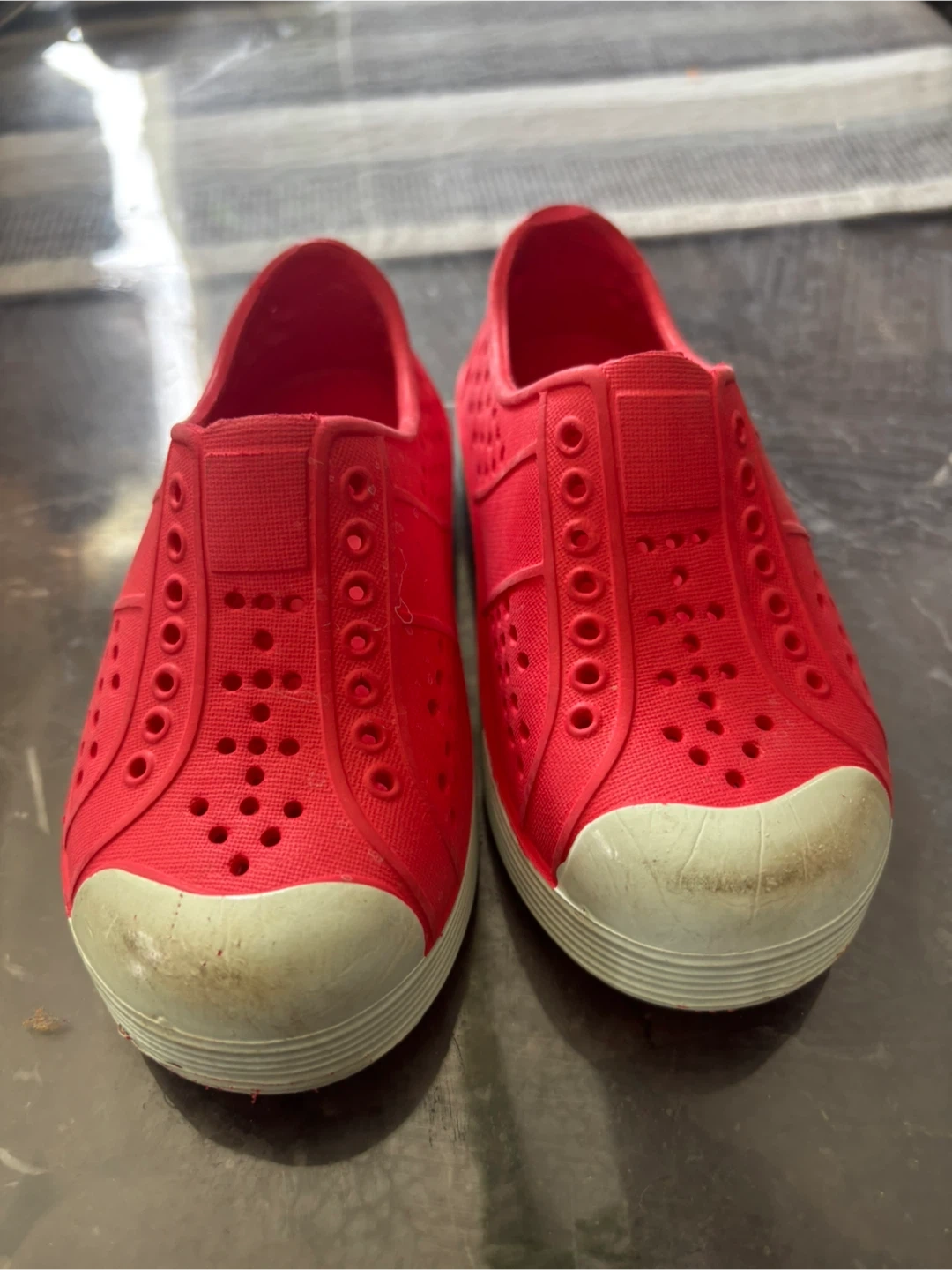 Buy & SellRed Water ShoesRed Water Shoes$6These are a pair of red water shoes. They're made of a flexible, waterproof material with a rubber sole. These shoes are easy to slip on and off.ConditionLike newAge1-2 yearsWHERE TO MEETCheck LocationView MapSELLERverifiedMirzaGooch Cres751 review0 chats·0 favorites·5 viewsSEND CHAT TO SELLERHi Mirza! I’m interested in your listing.Hi Mirza! I’m interested in your listing.Get the Karrot app to chatSign In to chat