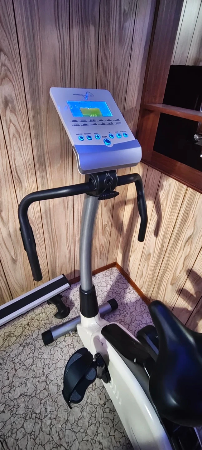 Frequency Fitness exercise bike with a digital display for tracking workouts. It has various modes and programs to choose from. Great for home cardio workouts!