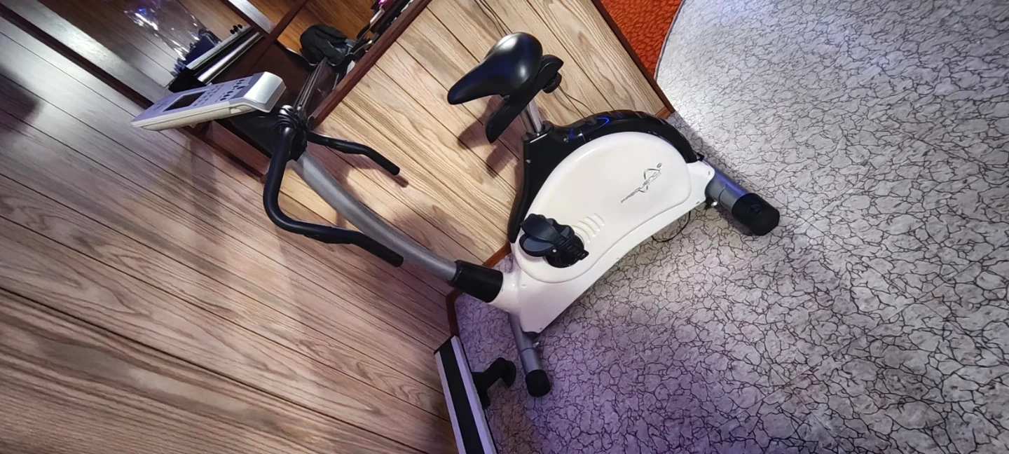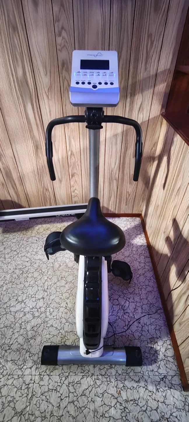 Frequency Fitness exercise bike with a digital display for tracking workouts. It has various modes and programs to choose from. Great for home cardio workouts!