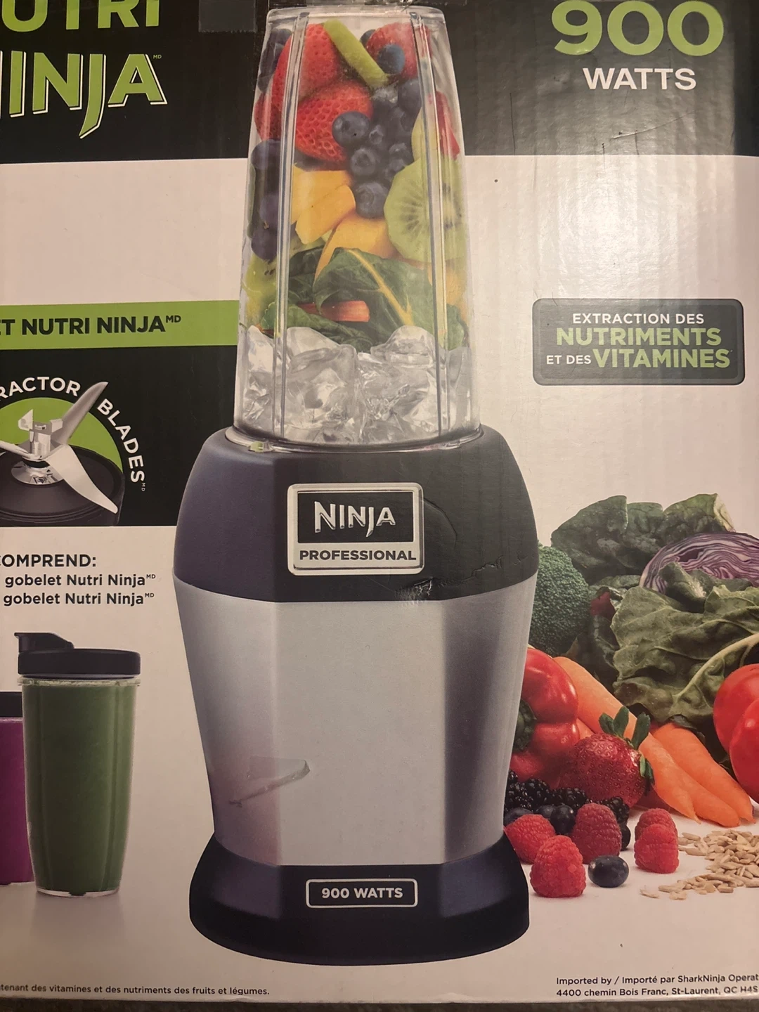 Nutri Ninja Professional blender with 900 watts of power. Includes one 530ml cup and one 710ml cup. Features Pro Extractor Blades for nutrient and vitamin extraction.