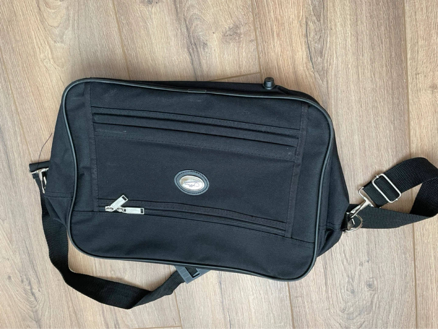 A sturdy black messenger bag, perfect for carrying your essentials. It features a zippered main compartment and a front zippered pocket. The adjustable shoulder strap ensures comfortable carrying.