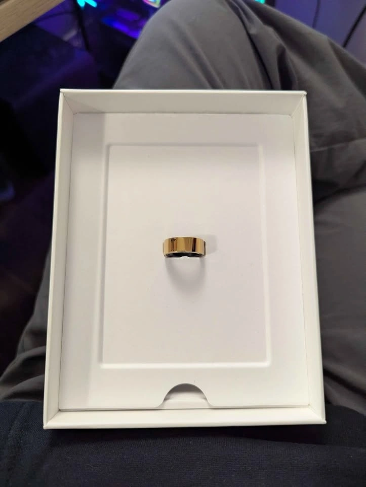 This is a new Ultrahuman Ring Air in gold, size 6 BUT it has pairing issues. Can't get it to pair, but ultrahuman support might be able to help I just can't be bothered.