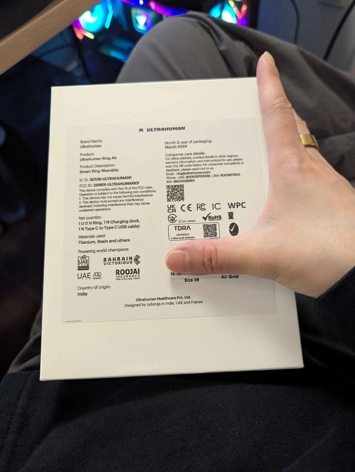 This is a new Ultrahuman Ring Air in gold, size 6 BUT it has pairing issues. Can't get it to pair, but ultrahuman support might be able to help I just can't be bothered.