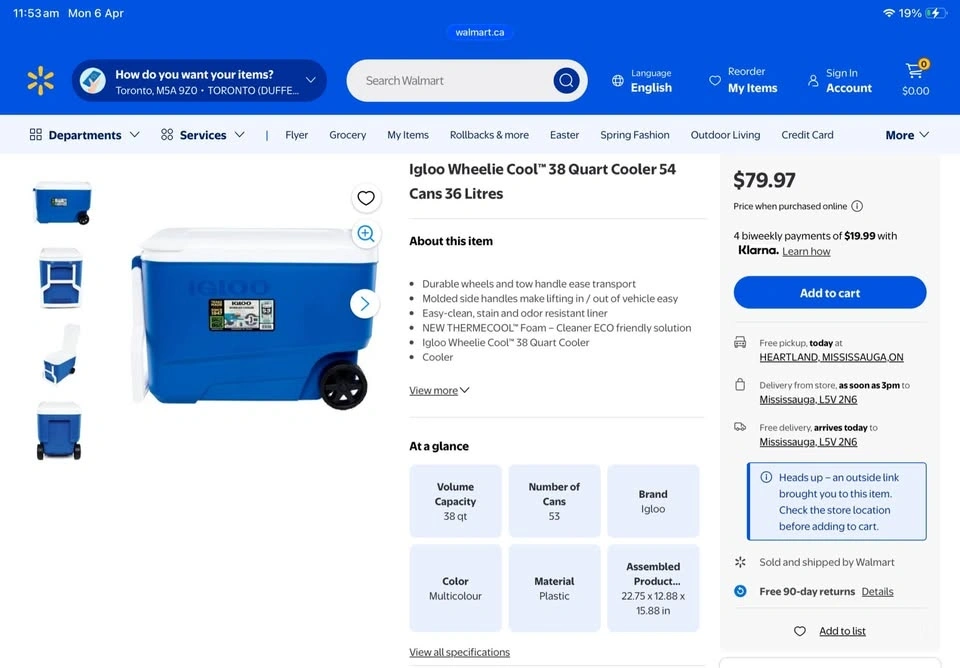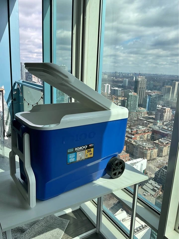 Prepare for the summer with this Igloo 38QT rolling cooler with wheels and pull handle—perfect for picnics, road trips, and summer outings. Clean, well-maintained, and works perfectly. Easy to move around and holds ice for hours. Originally $80, selling for $45. Used twice last summer. Pickup: Downtown Toronto (Esplanade & Yonge).