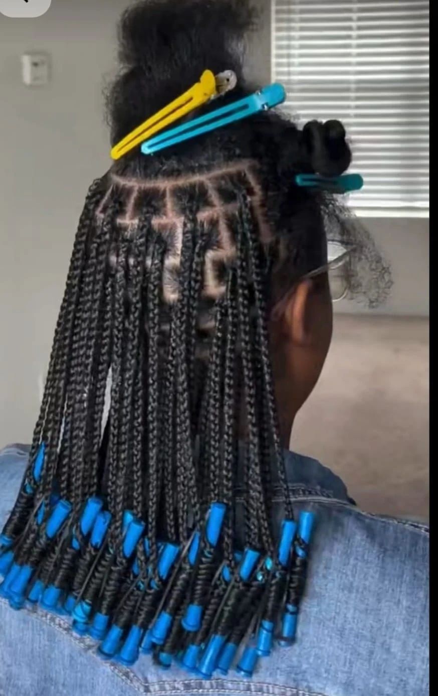 Box Braids with Blue Curlers