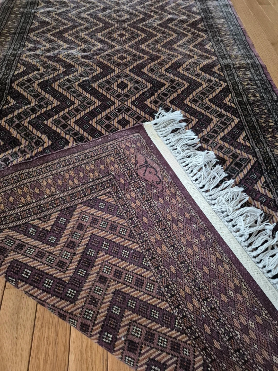 A wonderful authentic Turkman Ingelas [Ingilas] rug in the classic pattern called "Running River". Handmade, 120 knots per square inch, wool.