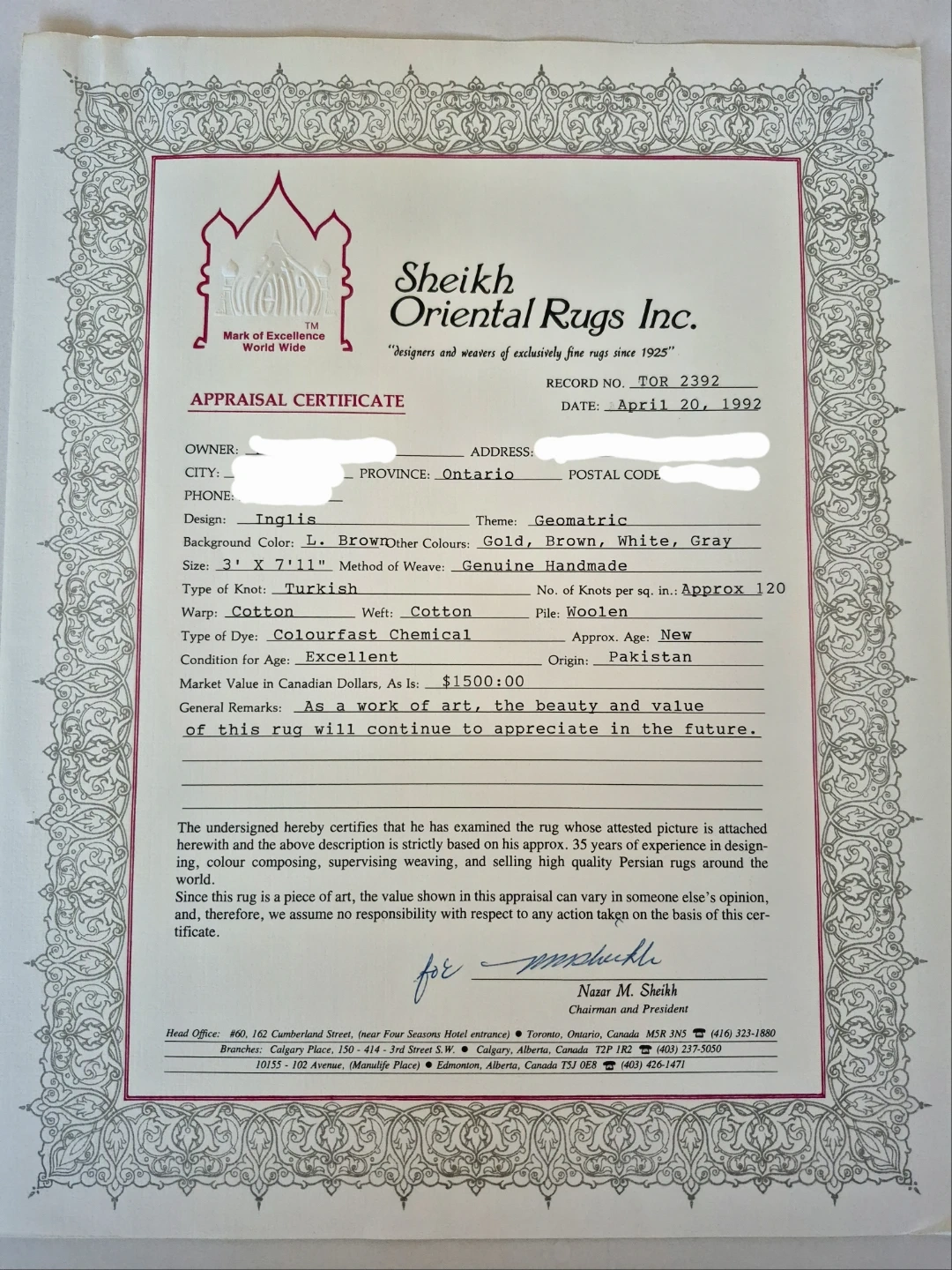 π· See photo of appraisal for all the details. As you can see, it was appraised back in 1992 at $1,500.