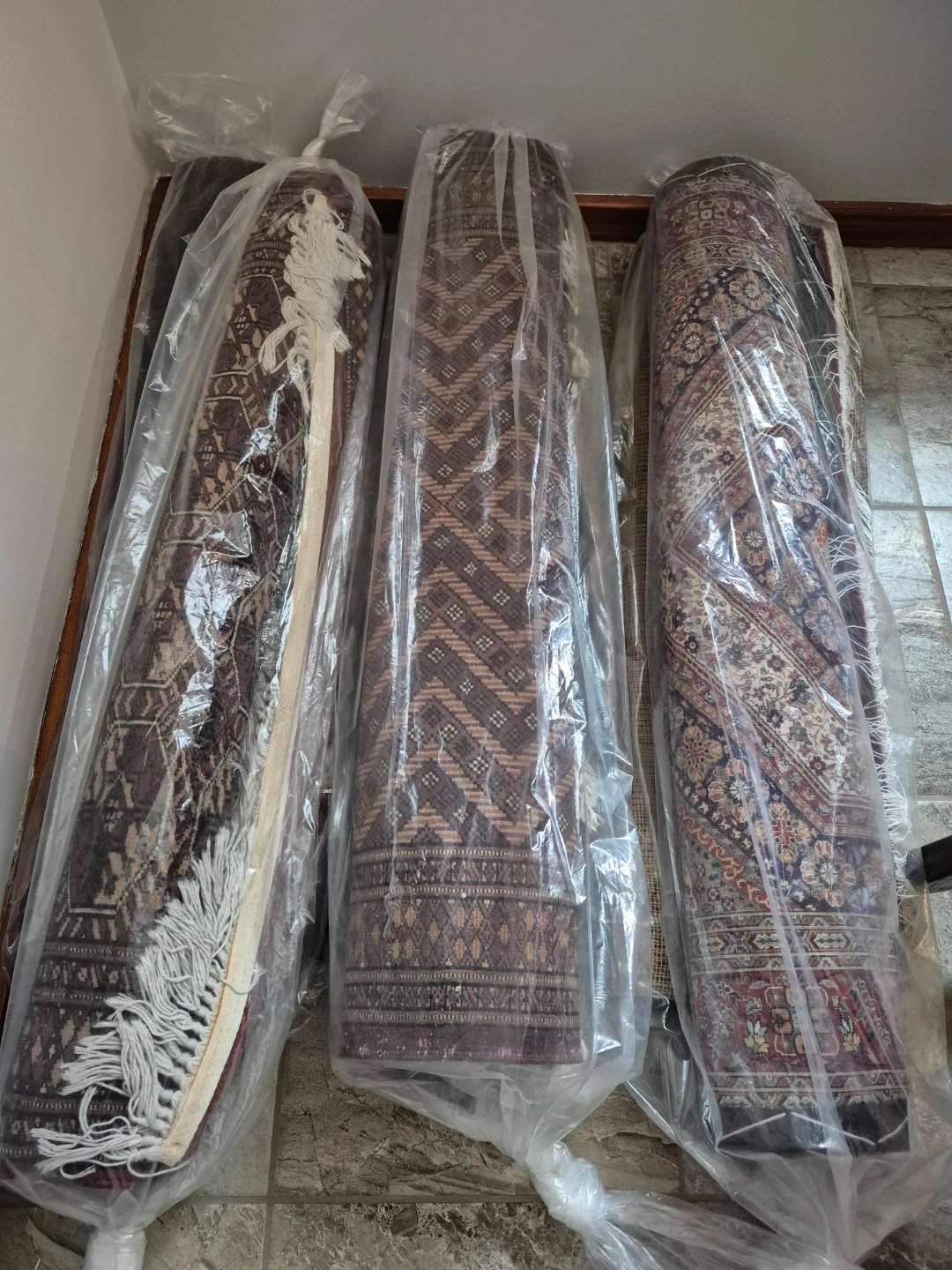 It has been professionally cleaned and is currently rolled up in the bag as delivered (see last photo). Of course we can unroll it so you can see it in person.