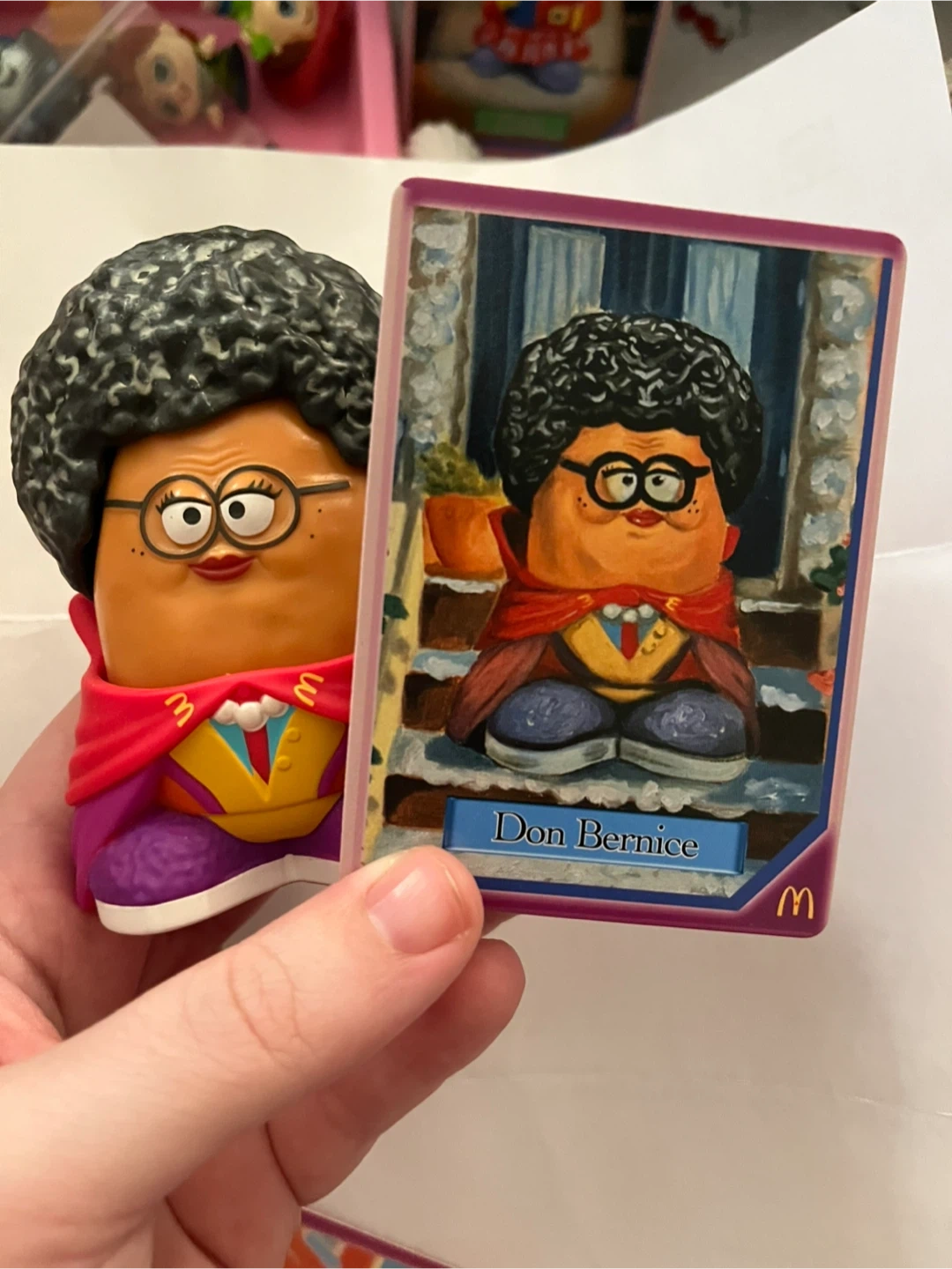 McDonald's Happy Meal toy featuring Don Bernice. Comes with a collectible card showing the character. It's a fun piece for any McDonald's or fast-food memorabilia collector.